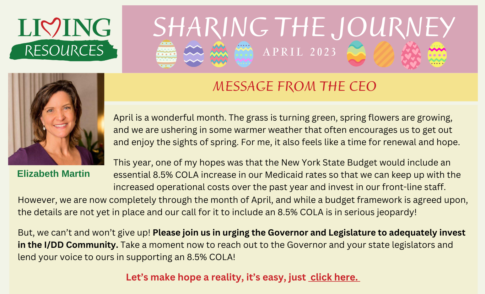 We are excited to announce our second Cycling to Creativity challenge! As the father of one of our supported individuals and an avid bicyclist, Ed Brennan issued this challenge in support of the many programs at Living Resources. Ed has a two-year goal to ride his bicycle from Albany, New York to Albany, Oregon, beginning in late May 2023. This year's leg will be taking him through New York, Pennsylvania, Ohio, Indiana, Illinois, Iowa, Wisconsin, and Minnesota and ending in Fargo, North Dakota - a distance of nearly 2,000 miles. This will be a self-supported and self-directed tour, meaning there [...]