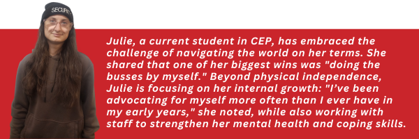 These stories represent just a fraction of the progress happening every day at CEP. Whether it’s Vanessa becoming a “pro” at living away from home, Gabriel learning to cook independently, or Gabby transitioning into a successful post-grad career, these achievements define what Developmental Disabilities Awareness Month is all about: inclusion, capability, and growth. As Gabriel shared, “I hope new students will learn new things too when they come to the program.”