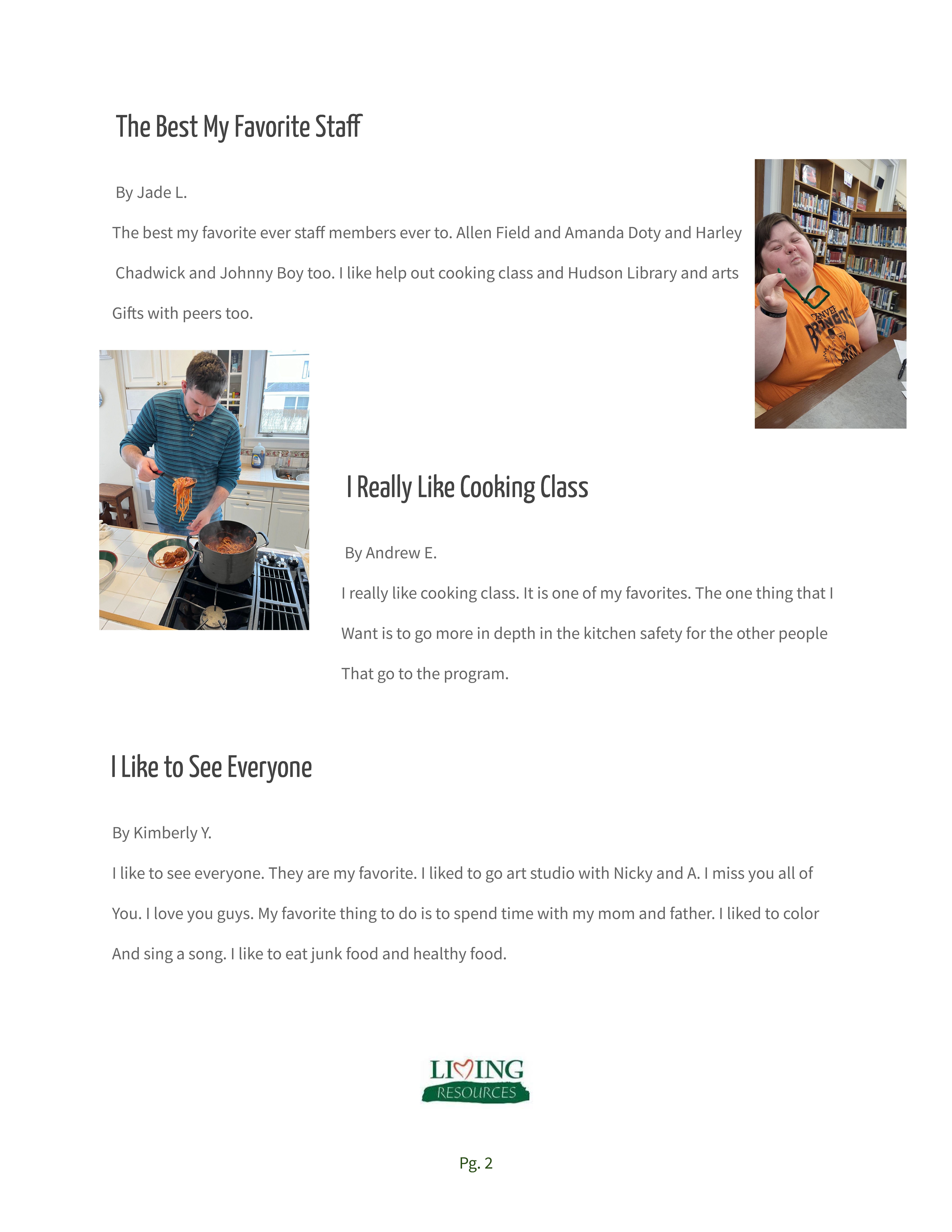 Whether it is through Alana B.’s love for the gym at the Youth Center or the beautiful “Spring Time” artwork featured on the cover, our individuals continue to inspire us with their unique perspectives and goals.
